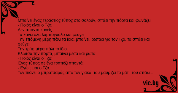 Κλωτσά την πόρτα, μπαίνει μέσα και ρωτά: