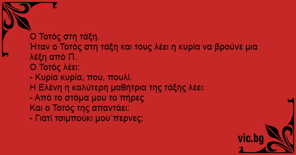 Ήταν ο Τοτός στη τάξη και τους λέει η κυρία να βρούνε μια λέξη από Π.