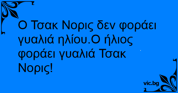 Ο Τσακ Νορις δεν φοράει γυαλιά ηλίου.Ο ήλιος φοράει γυαλιά Τσακ Νορις!