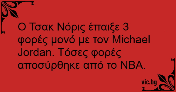 Ο Τσακ Νόρις έπαιξε 3 φορές μονό με τον Michael Jordan. Τόσες φορές αποσύρθηκε από το ΝΒΑ.