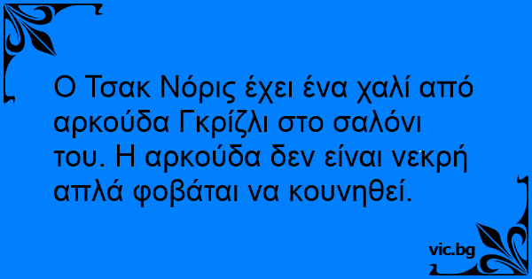 Ο Τσακ Νόρις έχει ένα χαλί από αρκούδα Γκρίζλι στο σαλόνι του. Η αρκούδα δεν είναι νεκρή απλά φοβάται να κουνηθεί.