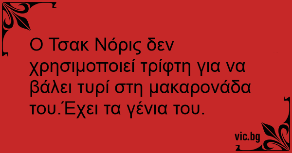 Ο Τσακ Νόρις δεν χρησιμοποιεί τρίφτη για να βάλει τυρί στη μακαρονάδα του.Έχει τα γένια του.