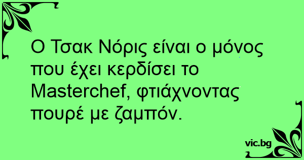 Ο Τσακ Νόρις είναι ο μόνος που έχει κερδίσει το Masterchef, φτιάχνοντας πουρέ με ζαμπόν.