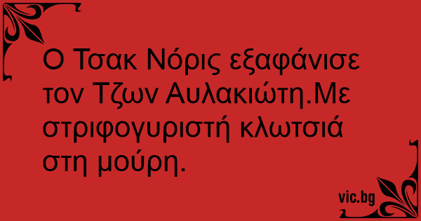 Ο Τσακ Νόρις εξαφάνισε τον Τζων Αυλακιώτη.Με στριφογυριστή κλωτσιά στη μούρη.