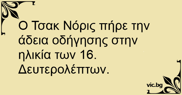 Ο Τσακ Νόρις πήρε την άδεια οδήγησης στην ηλικία των 16. Δευτερολέπτων.