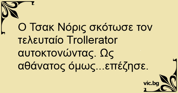 Ο Τσακ Νόρις σκότωσε τον τελευταίο Trollerator αυτοκτονώντας. Ως αθάνατος όμως...επέζησε.