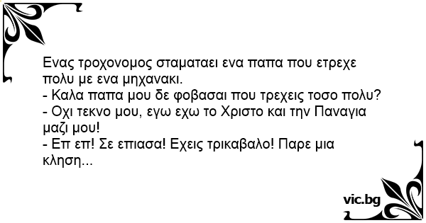 - Καλα παπα μου δε φοβασαι που τρεχεις τοσο πολυ?