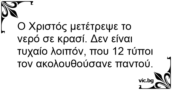 Ο Χριστός μετέτρεψε το νερό σε κρασί. Δεν είναι τυχαίο λοιπόν, που 12 τύποι τον ακολουθούσανε παντού.