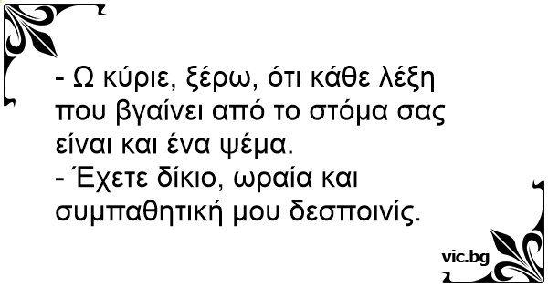 - Ω κύριε, ξέρω, ότι κάθε λέξη που βγαίνει από το στόμα σας είναι και ένα ψέμα.
