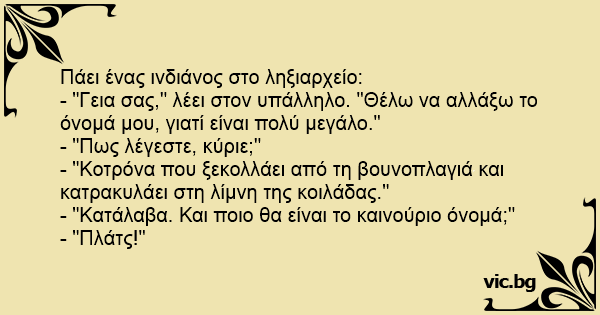 - "Γεια σας," λέει στον υπάλληλο. "Θέλω να αλλάξω το όνομά μου, γιατί είναι πολύ μεγάλο."