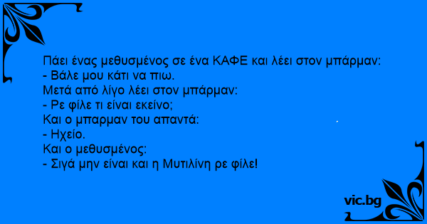Πάει ένας μεθυσμένος σε ένα ΚΑΦΕ και λέει στον μπάρμαν: