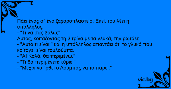 Πάει ένας σ` ένα ζαχαροπλαστείο. Εκεί, του λέει η υπάλληλος: