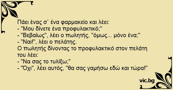 Πάει ένας σ` ένα φαρμακείο και λέει: