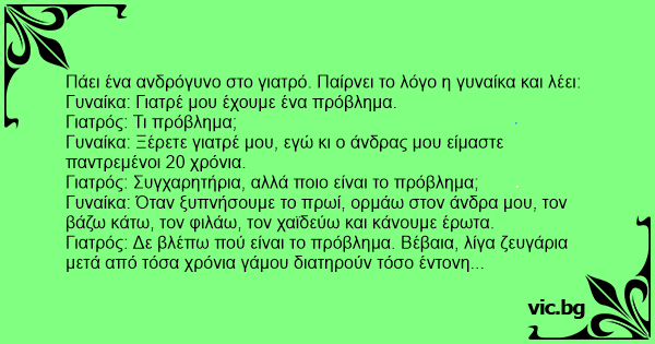 Γυναίκα: Γιατρέ μου έχουμε ένα πρόβλημα.