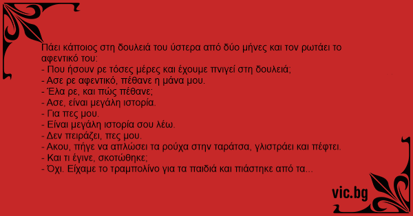 - Ασε ρε αφεντικό, πέθανε η μάνα μου.