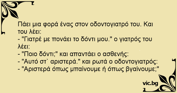 - "Ποιο δόντι;" και απαντάει ο ασθενής: