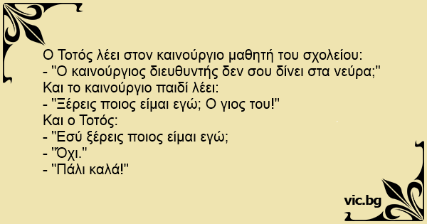 Ο Τοτός λέει στον καινούργιο μαθητή του σχολείου: