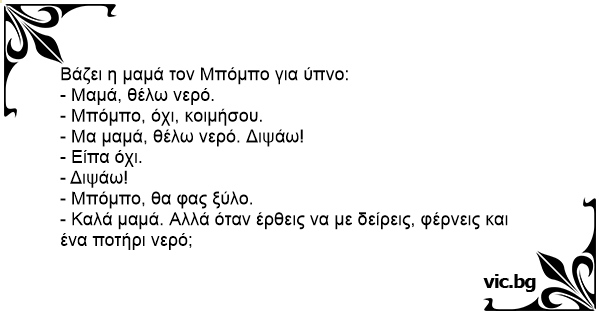 - Καλά μαμά. Αλλά όταν έρθεις να με δείρεις, φέρνεις και ένα ποτήρι νερό;