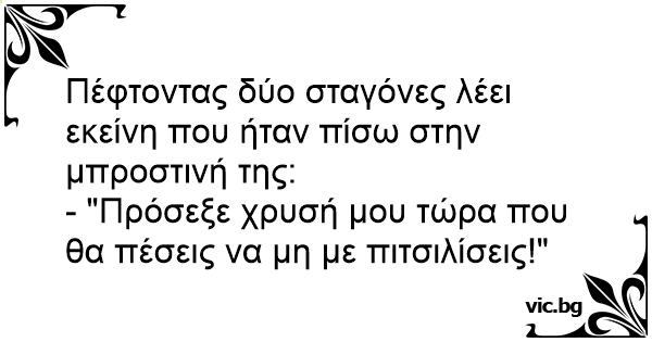 - "Πρόσεξε χρυσή μου τώρα που θα πέσεις να μη με πιτσιλίσεις!"