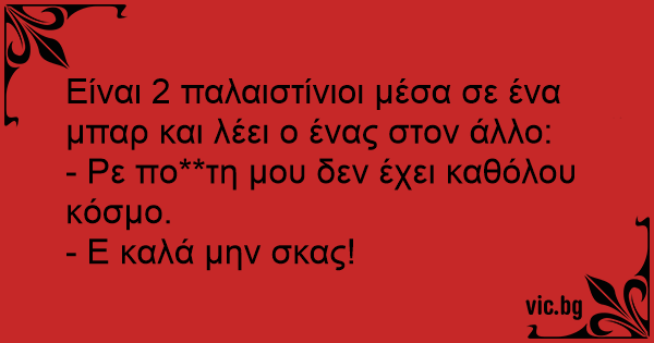 Είναι 2 παλαιστίνιοι μέσα σε ένα μπαρ και λέει ο ένας στον άλλο: