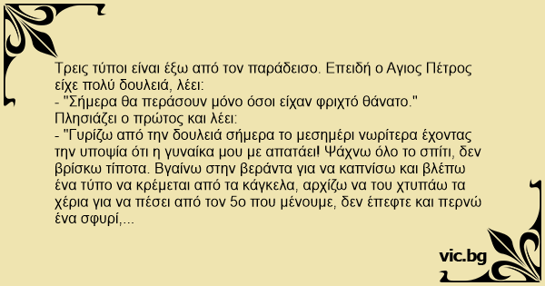Τρεις τύποι είναι έξω από τον παράδεισο. Επειδή ο Aγιος Πέτρος είχε πολύ δουλειά, λέει: