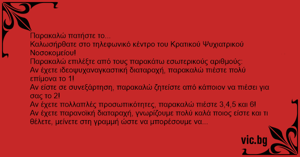 Καλωσήρθατε στο τηλεφωνικό κέντρο του Κρατικού Ψυχιατρικού Νοσοκομείου!