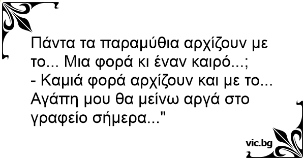 Πάντα τα παραμύθια αρχίζουν με το... Μια φορά κι έναν καιρό...; - Kαμιά φορά αρχίζουν και με το... Αγάπη μου θα μείνω αργά στο γραφείο σήμερα..."