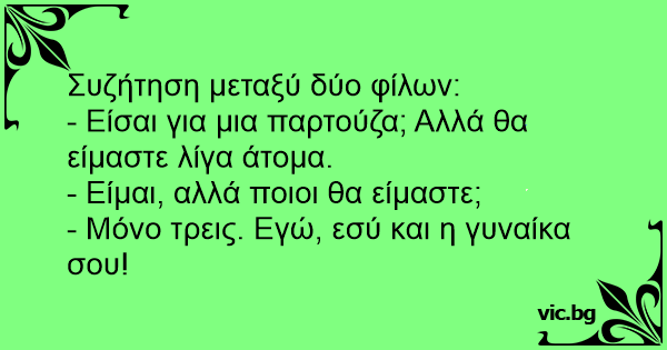 - Μόνο τρεις. Εγώ, εσύ και η γυναίκα σου!
