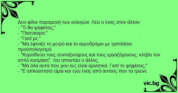 Δυο φίλοι παραμονή των εκλογών. Λέει ο ένας στον άλλον: