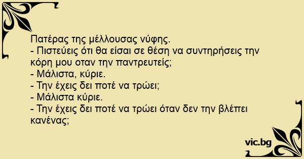 - Πιστεύεις ότι θα είσαι σε θέση να συντηρήσεις την κόρη μου οταν την παντρευτείς;