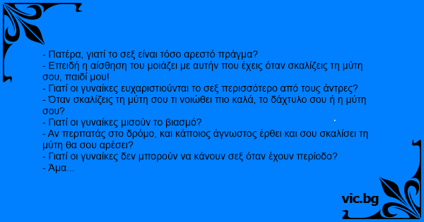 - Πατέρα, γιατί το σεξ είναι τόσο αρεστό πράγμα?