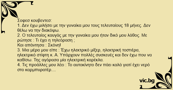 1. Δεν έχω μιλήσει με την γυναίκα μου τους τελευταίους 18 μήνες. Δεν θέλω να την διακόψω.