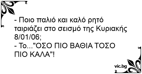 - Ποιο παλιό και καλό ρητό ταιριάζει στο σεισμό της Κυριακής 8/01/06;