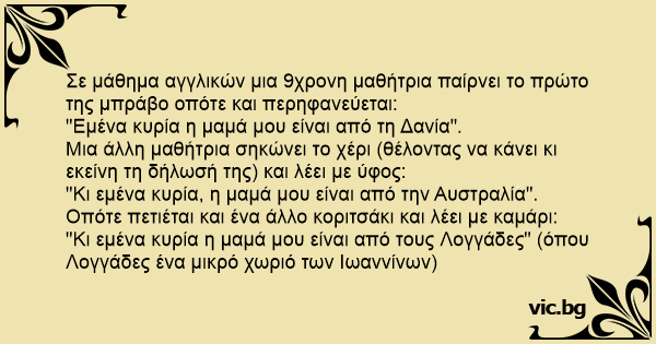 "Εμένα κυρία η μαμά μου είναι από τη Δανία".