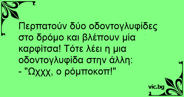 Περπατούν δύο οδοντογλυφίδες στο δρόμο και βλέπουν μία καρφίτσα! Τότε λέει η μια οδοντογλυφίδα στην άλλη:
