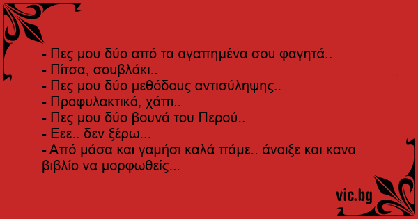 - Από μάσα και γαμήσι καλά πάμε.. άνοιξε και κανα βιβλίο να μορφωθείς...
