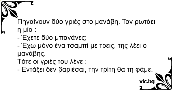 Πηγαίνουν δύο γριές στο μανάβη. Τον ρωτάει η μία :