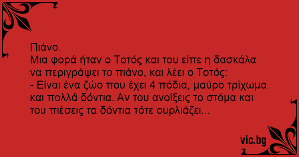 Mια φορά ήταν ο Tοτός και του είπε η δασκάλα να περιγράψει το πιάνο, και λέει ο Tοτός: