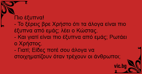 - Το ξέρεις βρε Χρήστο ότι τα άλογα είναι πιο έξυπνα από εμάς; λέει ο Κώστας.