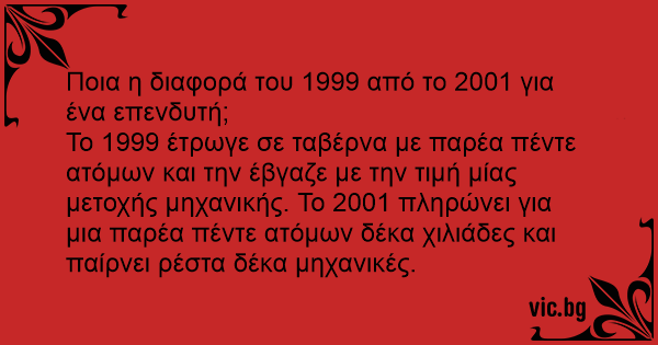 Ποια η διαφορά του 1999 από το 2001 για ένα επενδυτή;