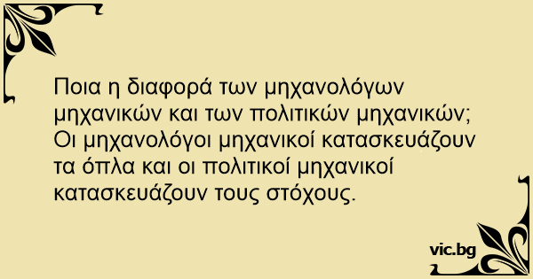 Οι μηχανολόγοι μηχανικοί κατασκευάζουν τα όπλα και οι πολιτικοί μηχανικοί κατασκευάζουν τους στόχους.