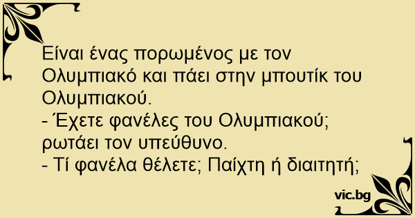 - Έχετε φανέλες του Ολυμπιακού; ρωτάει τον υπεύθυνο.