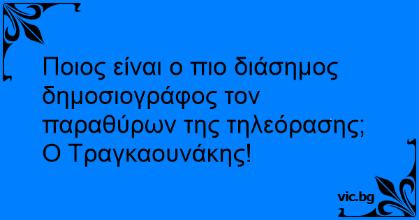 Ποιος είναι ο πιο διάσημος δημοσιογράφος τον παραθύρων της τηλεόρασης;Ο Τραγκαουνάκης! 0 0 0 Πώς λέγεται ανέκδοτα