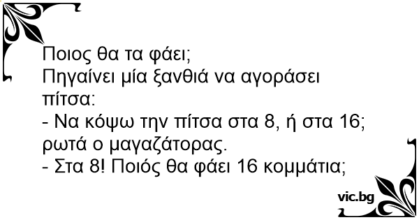 - Να κόψω την πίτσα στα 8, ή στα 16; ρωτά ο μαγαζάτορας.
