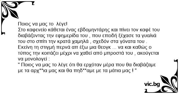 " Ποιος να μας το λέγε ότι θα ερχόταν μέρα που θα διαβάζαμε με τα αρχ**ια μας και θα πηδ**αμε με τα μάτια μας ! "