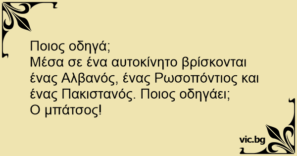 Μέσα σε ένα αυτοκίνητο βρίσκονται ένας Αλβανός, ένας Ρωσοπόντιος και ένας Πακιστανός. Ποιος οδηγάει;