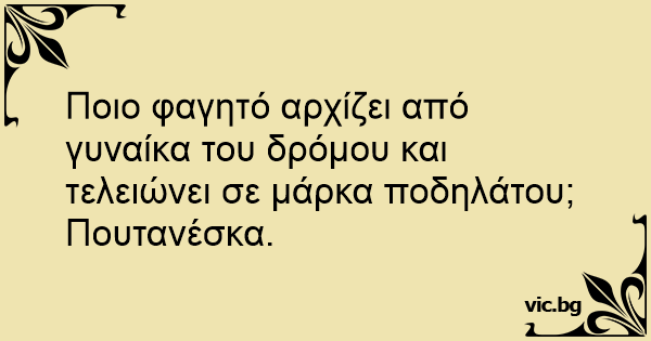 Ποιο φαγητό αρχίζει από γυναίκα του δρόμου και τελειώνει σε μάρκα ποδηλάτου;