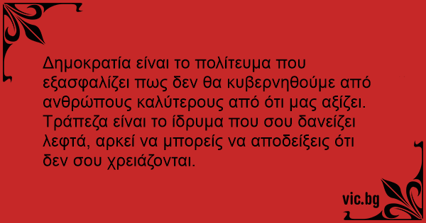Δημοκρατία είναι το πολίτευμα που εξασφαλίζει πως δεν θα κυβερνηθούμε από ανθρώπους καλύτερους από ότι μας αξίζει.
