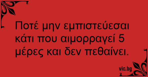 Ποτέ μην εμπιστεύεσαι κάτι που αιμορραγεί 5 μέρες και δεν πεθαίνει.