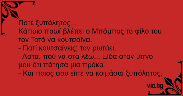- Αστα, πού να στα λέω... Είδα στον ύπνο μου ότι πάτησα μια πρόκα.